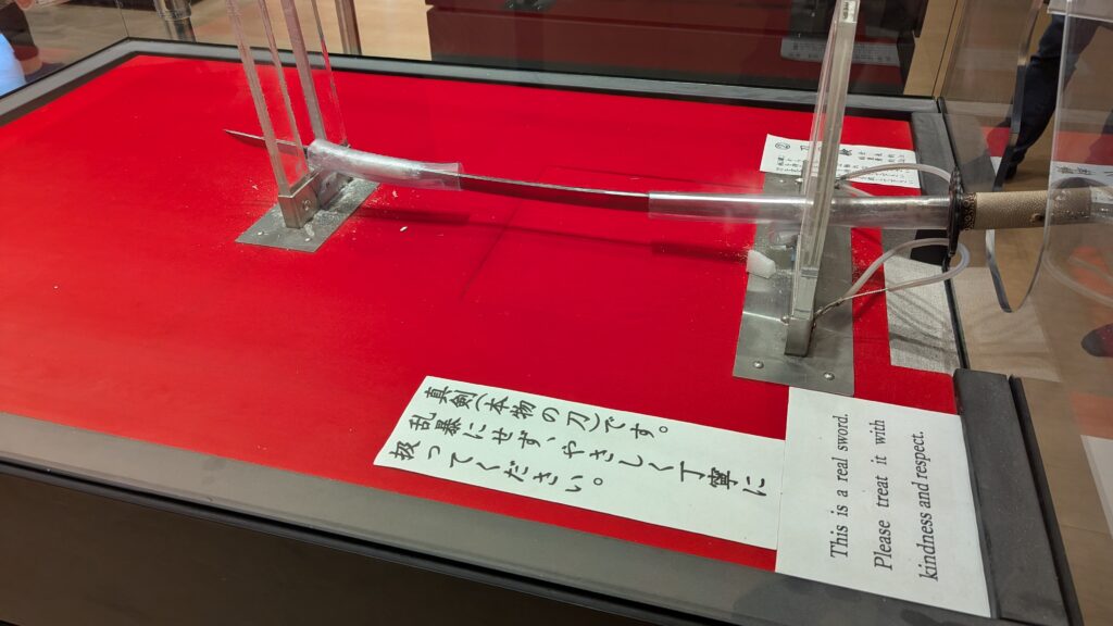 想像以上に重たい…前にいた若い女性は大きい刀持てませんでしたね