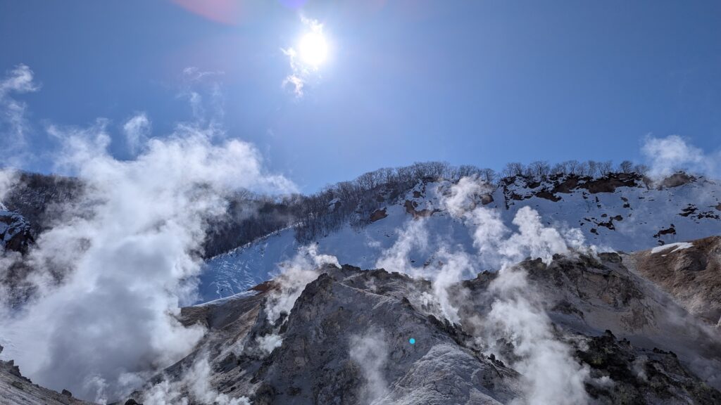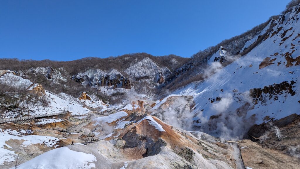 まずは地獄谷、壮大な温泉景色に圧倒。