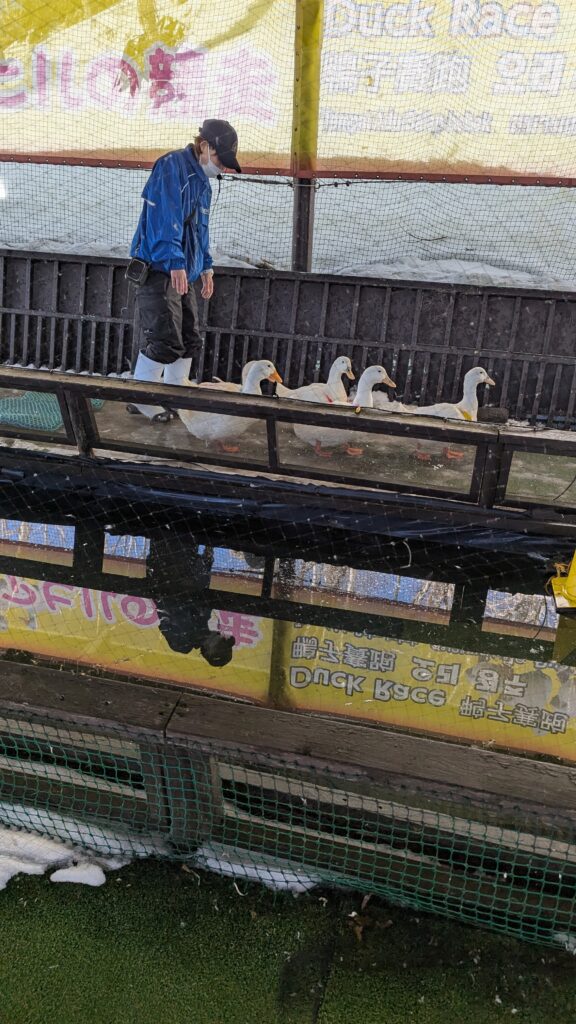 クマに餌やれたり、アヒルがいて賭けレースとかあって友人が勝って、限定品のキーホルダー貰ってた(笑)。