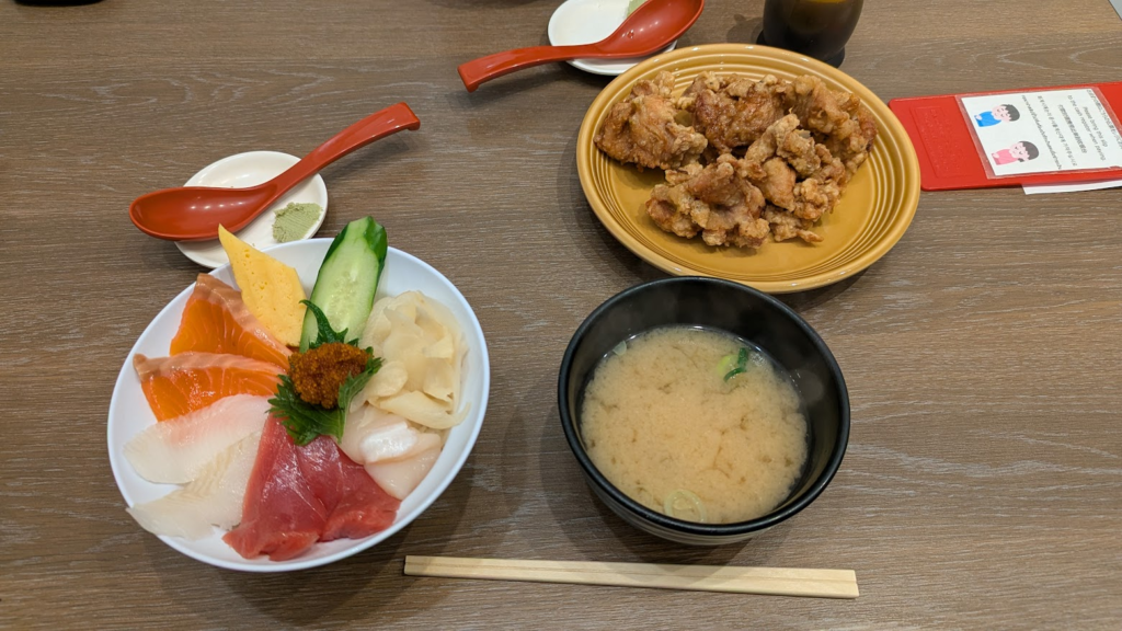 夕飯で食べたのは海鮮丼!魚介類は正直苦手でしたが、本当に美味しい!