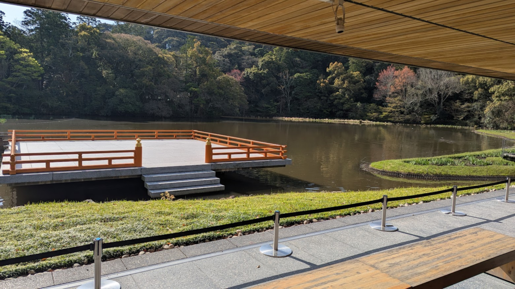 綺麗な池があって見晴らしが良かったです。30分くらい待って開館時間に合わせて、せんぐう館も行ってきました。