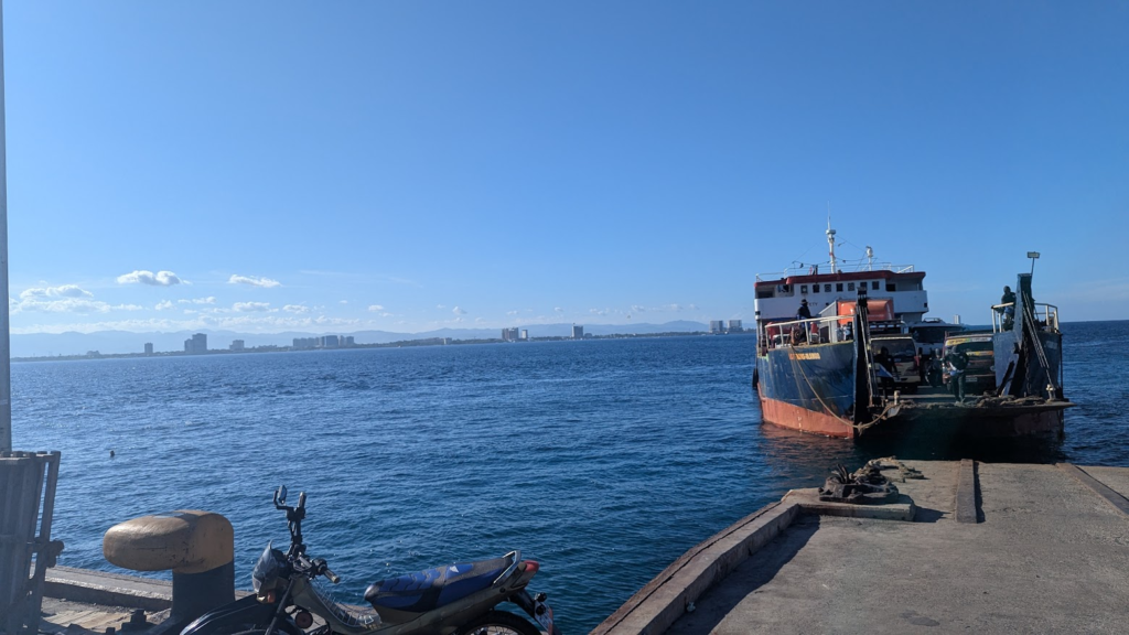 フィリピン初のコンビニ行った後、ジープニー(車の後部座席に乗りまくるやつ)とトライシクル(3輪タクシー)を乗り継ぎフェリーでマクタン島を出発。